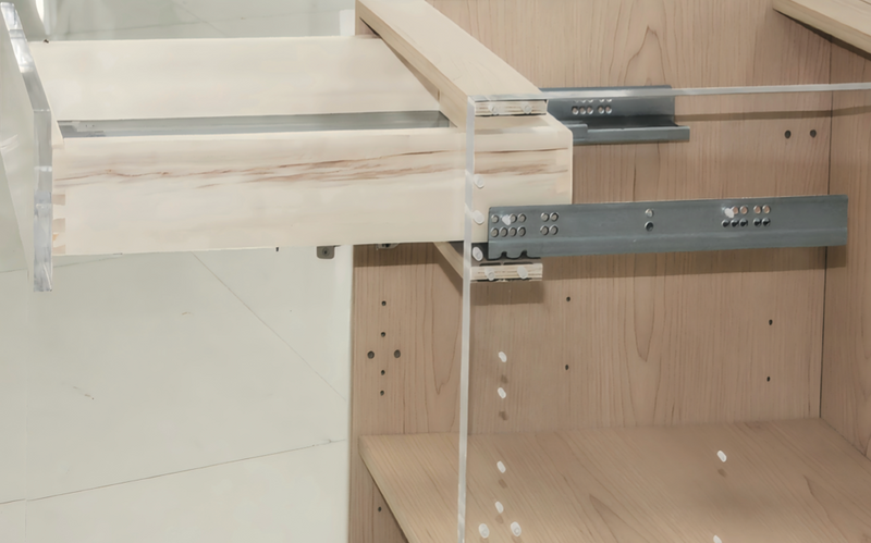 - Full extension drawer with solid wood dovetail construction and soft-close undermount sliders